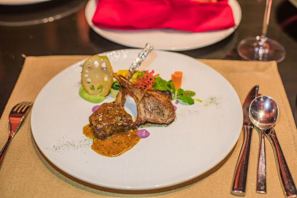今天的晚餐在位于酒店一楼的集味西餐厅。餐厅跟旁边的庭院相连,环境优雅,四周的落地窗能让你坐在餐厅中就将对岸的湖景、夜景尽收眼底。
