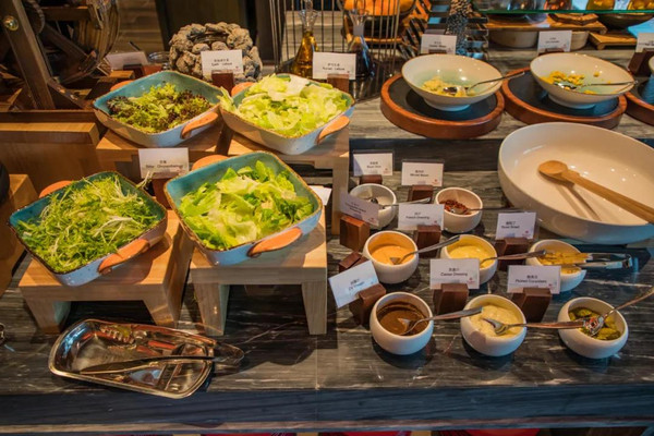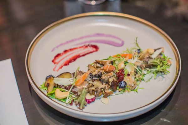 沙拉则是在有机蔬菜中混合了各种菌类,有香菇、鸡腿菇、松露等,还有坚果在里边,吃起来非常富有层次。沙拉还配有不同风味的坚果酱可以自己选择。