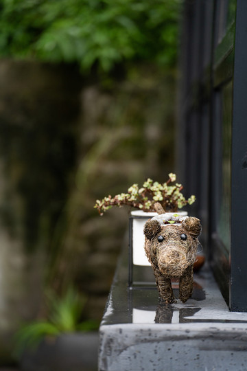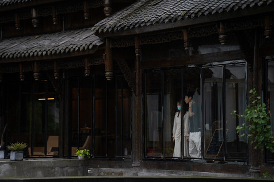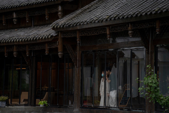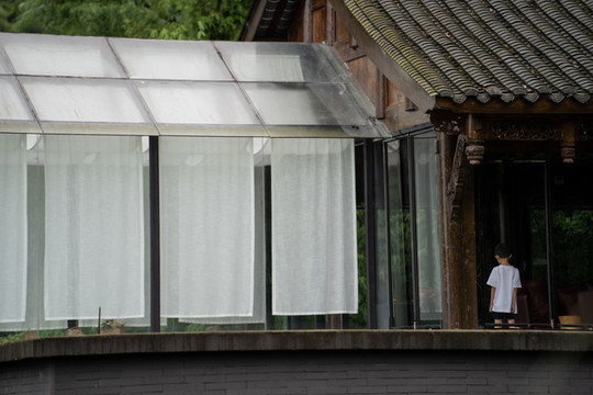 店里的小哥正在院子里扫水,我点头和他示意,他腼腆笑脸回迎,又继续专注于他的工作。