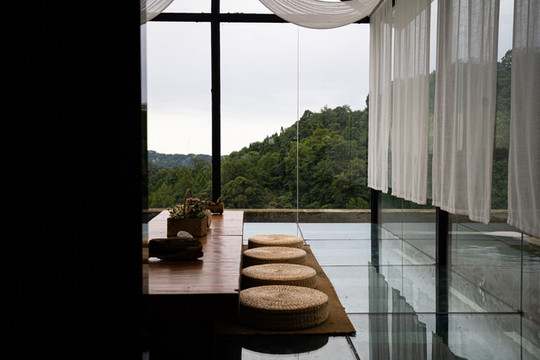 山里的夜晚,静谧又夹带着一声声虫鸣,天黑了便躺下,窗帘可以大开,对面是大片的山林,醒来只有光和绿色会映入眼帘。