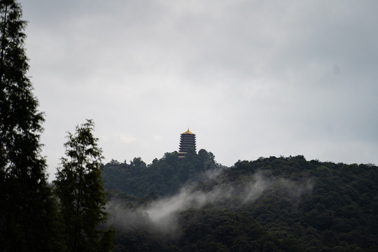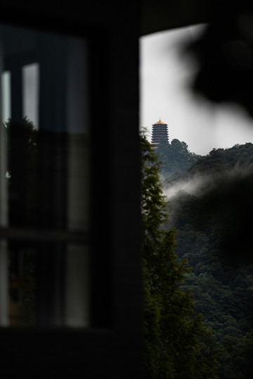房间的窗户向青城山顶望去,远远的稀雾中有一座高塔伫立,我到离开前也没去问,那是座什么塔。