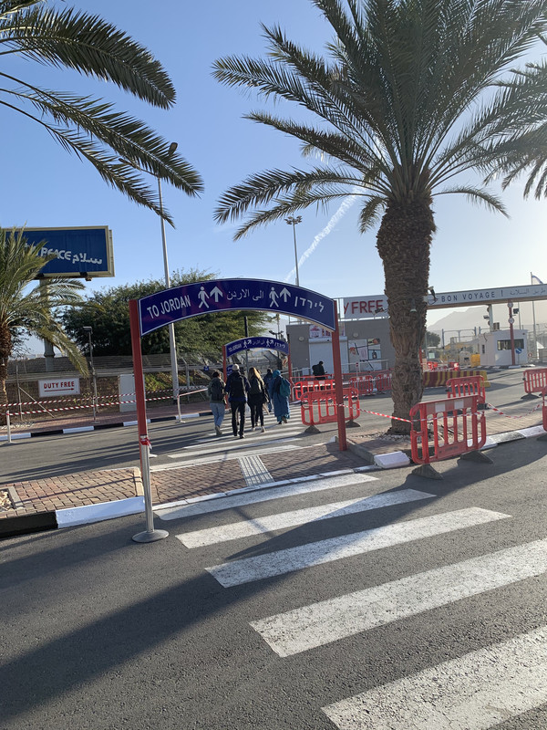 从以色利出关到约旦入关,走过一段水泥路,居然还有免税商店。但是没有人有心思进去看,因为周围都是士兵在盯着。走过一段500多米的边境线,感觉自己不像在异土的游客,而是电影里交换的战俘,很奇异的感觉。
