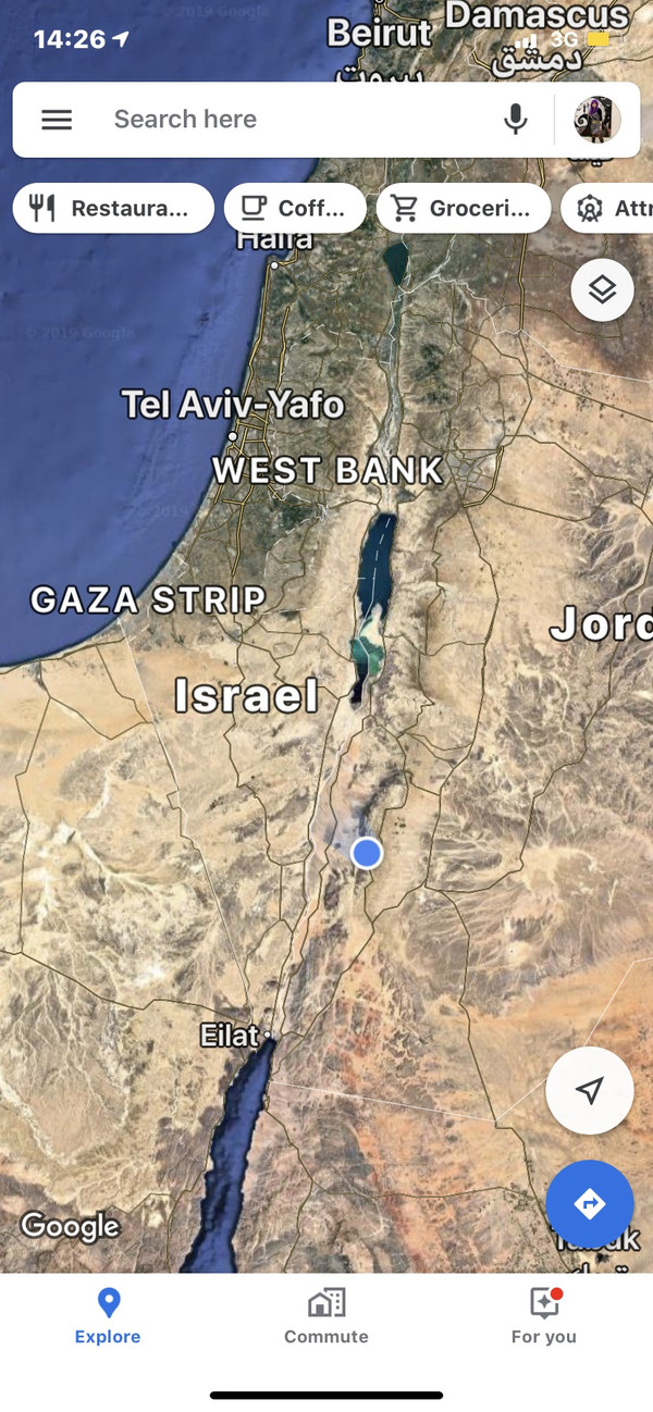 蓝点是佩特拉在卫星地图中的位置。从以拉特进入约旦,转向北上还有一个多小时的车程才进入佩特拉古城外的停车场。