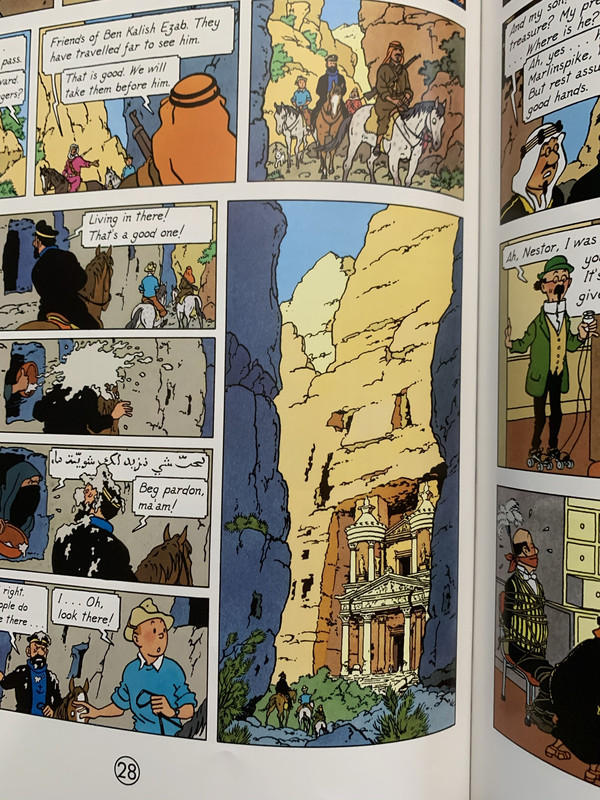 小时候知道佩特拉是因为印第安纳琼斯3,哈里森福特和肖恩康纳利在寻找圣杯的路上,"金库"的玫瑰门在电影里面惊鸿一瞥,随后就是最伟大的LEAP OF FAITH画面。还有丁丁历险记里面,丁丁和海多克船长帮阿卜杜拉王子找酋长爸爸,"金库"也被描绘为酋长的藏身地。还有阿加莎克里斯蒂的死亡约会,也是发生在佩特拉。所以,我想去看看。(事实是,佩特拉超过了庞贝古城,仅次于以弗所目前列为我所推荐的古代遗迹第二名)。
