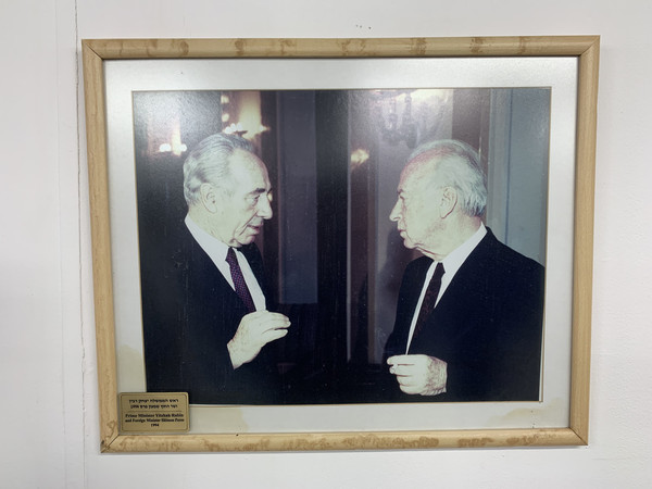 回以色列的入境通道里,墙上挂着拉宾与时任以色利外长佩雷斯的合影。