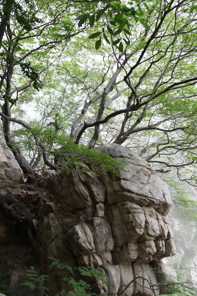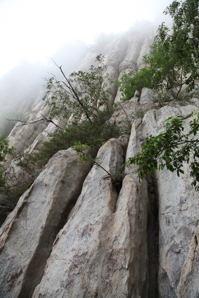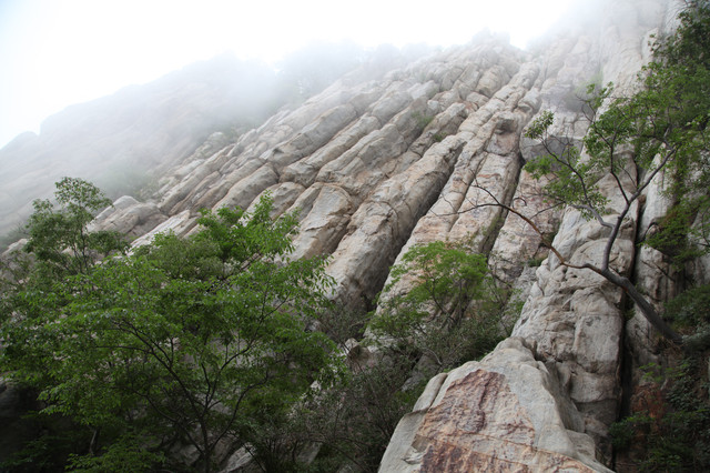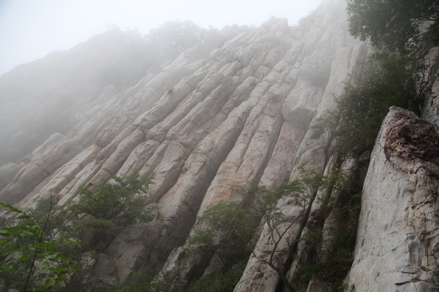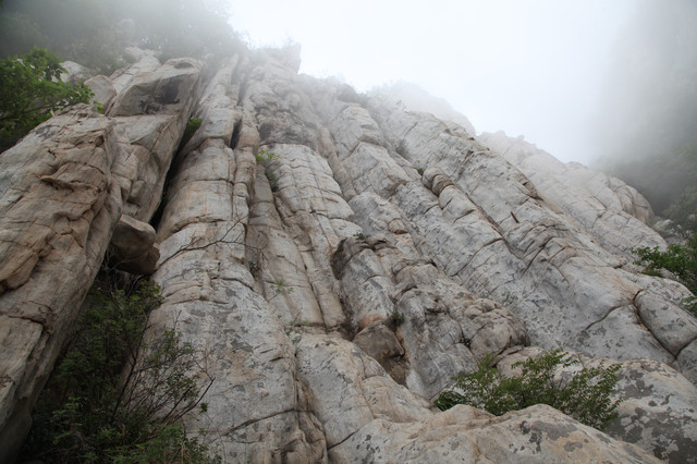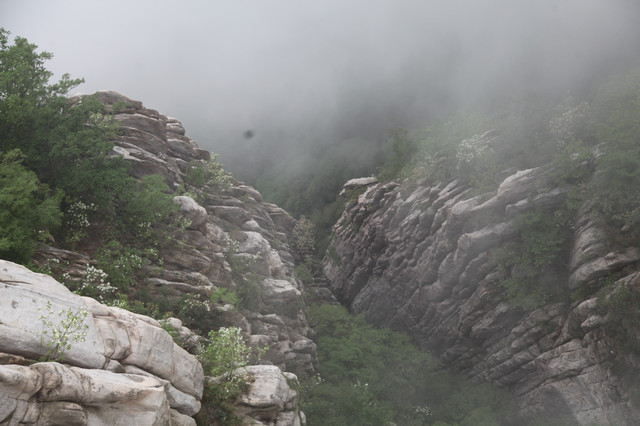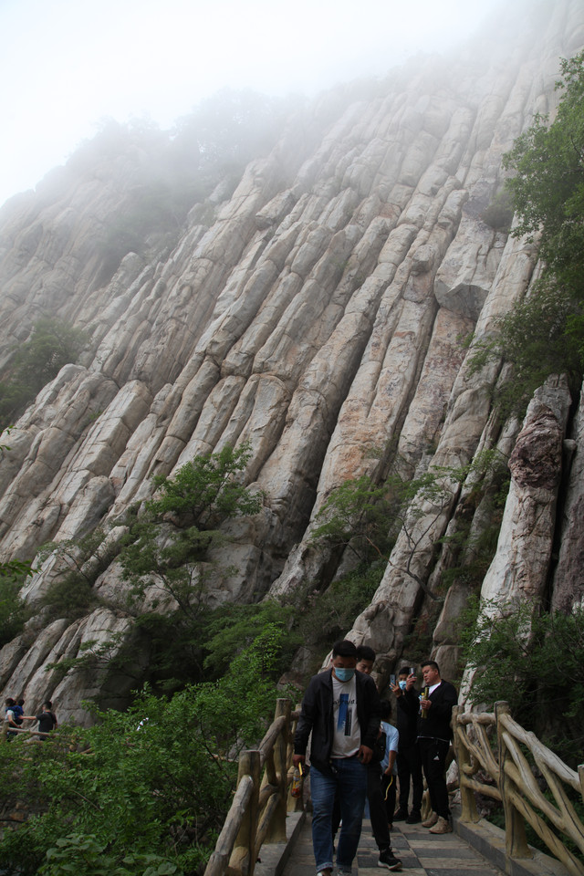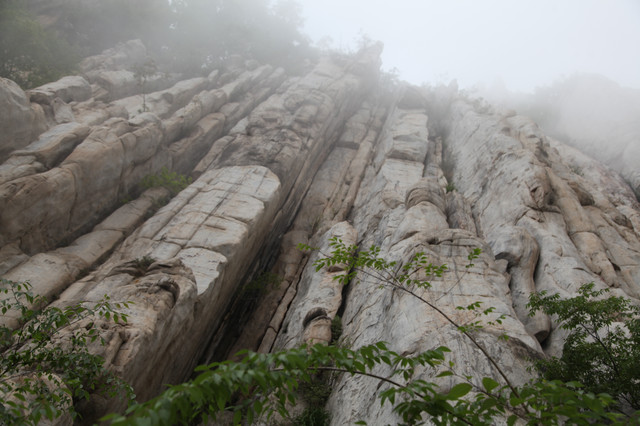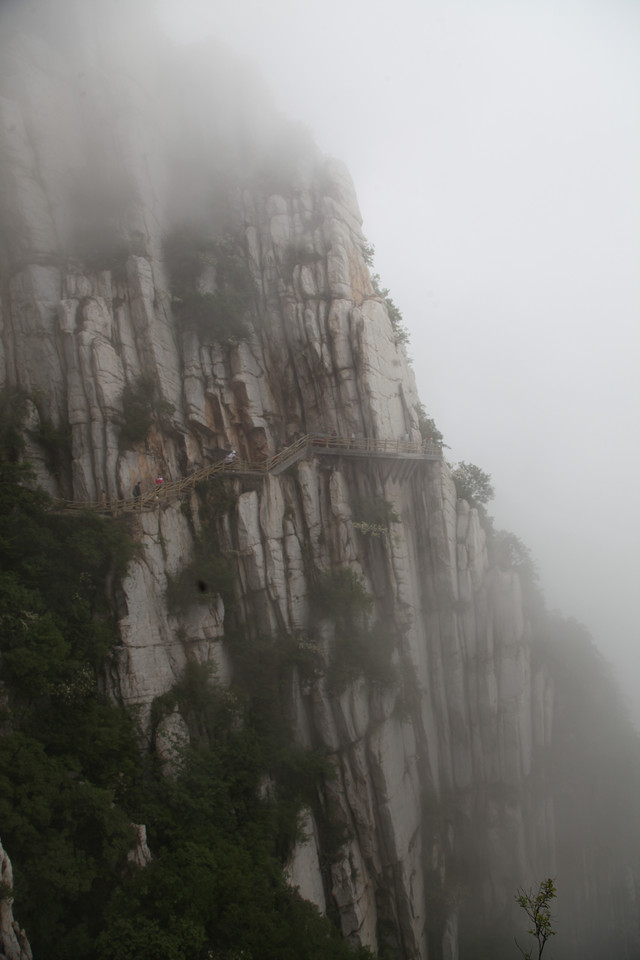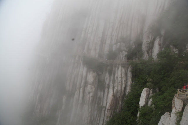忽隐忽现的云雾,给这嵩山蒙上一层薄纱,增添了几分羞涩与神秘感。这嵩山也是沧海桑田,历经亿万年的演化而来的。栈道建在半山腰,顺着山形地貌蜿蜒前伸,人走在其上,如临仙境,翩翩欲仙。