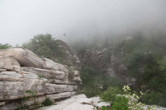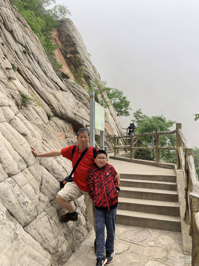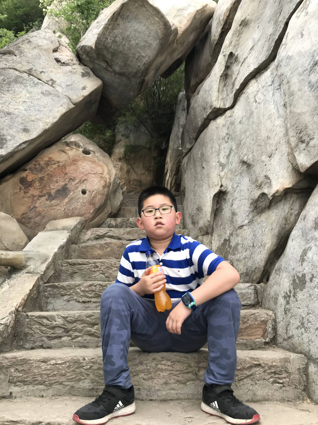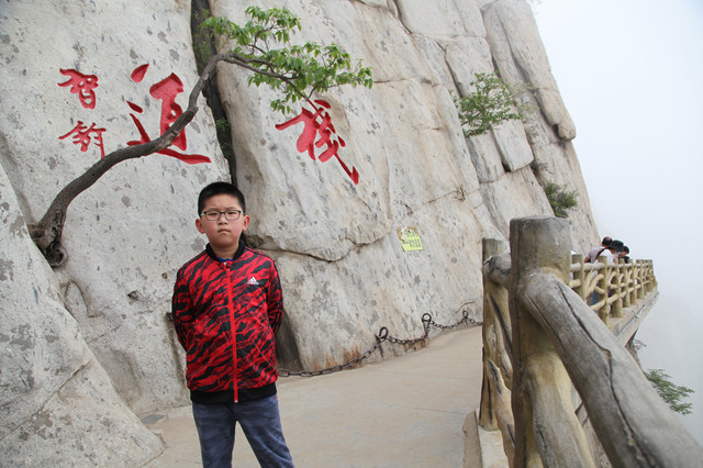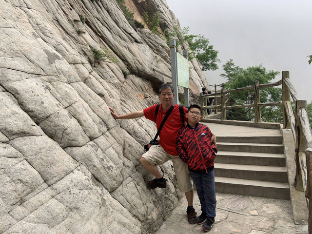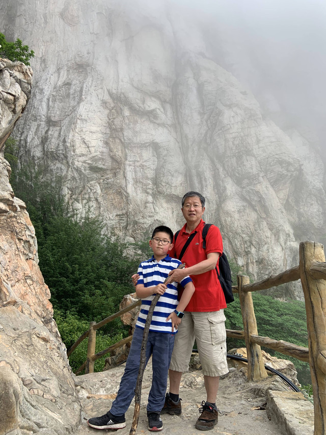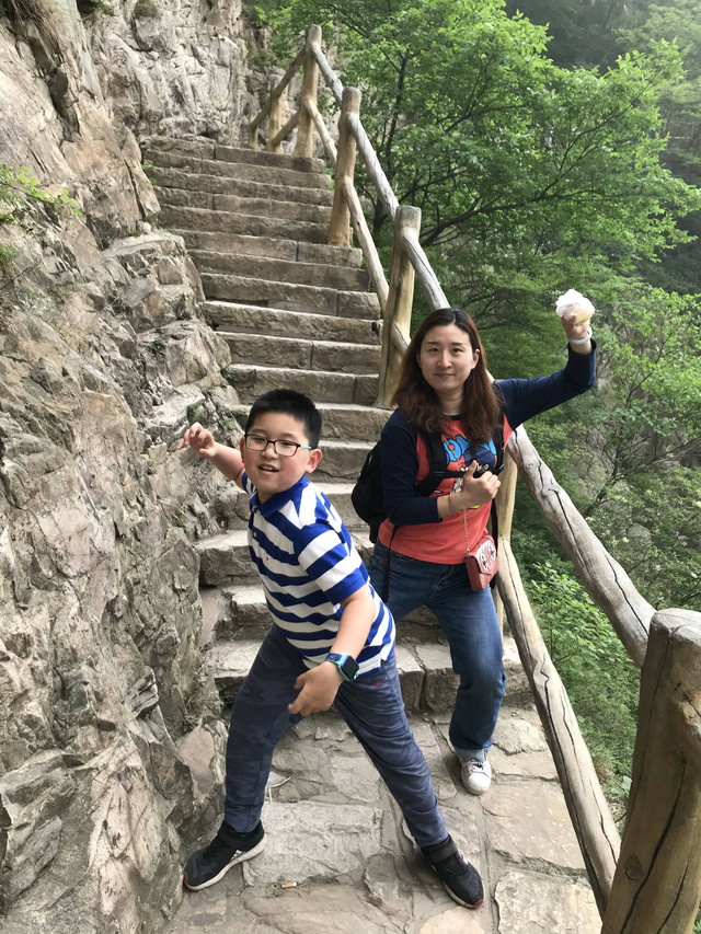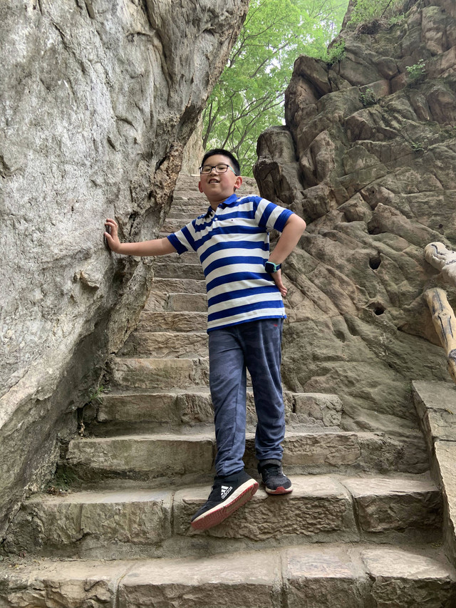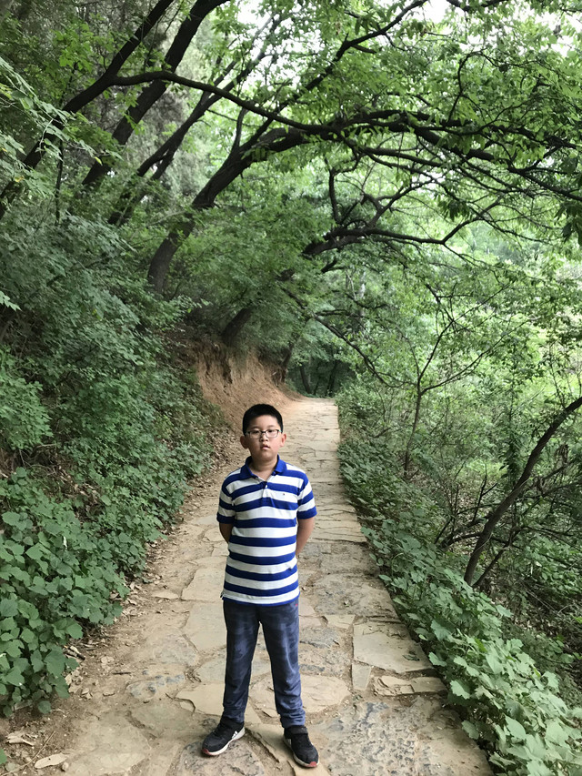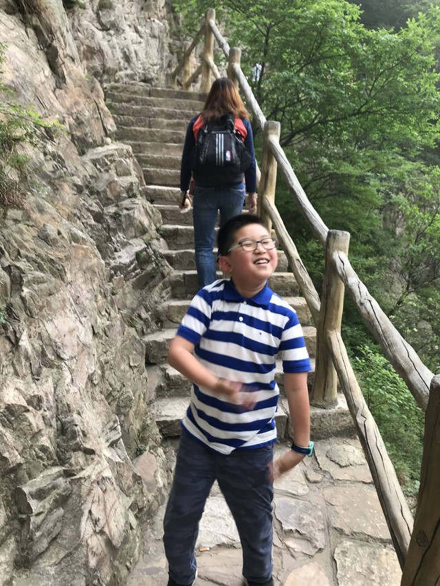 走到索桥,再往上不远处就是三皇寨了。眼见云雾依然不褪,我们就此打住,不打算继续前行了。正站在索桥对岸稍事休息时,有个郑州孩子,过来和我们家龙太子聊天,问龙太子的手表是什么型号的,并大方提出要加龙太子为好友。于是,两个孩子交换了手机信息,添加为好友了。