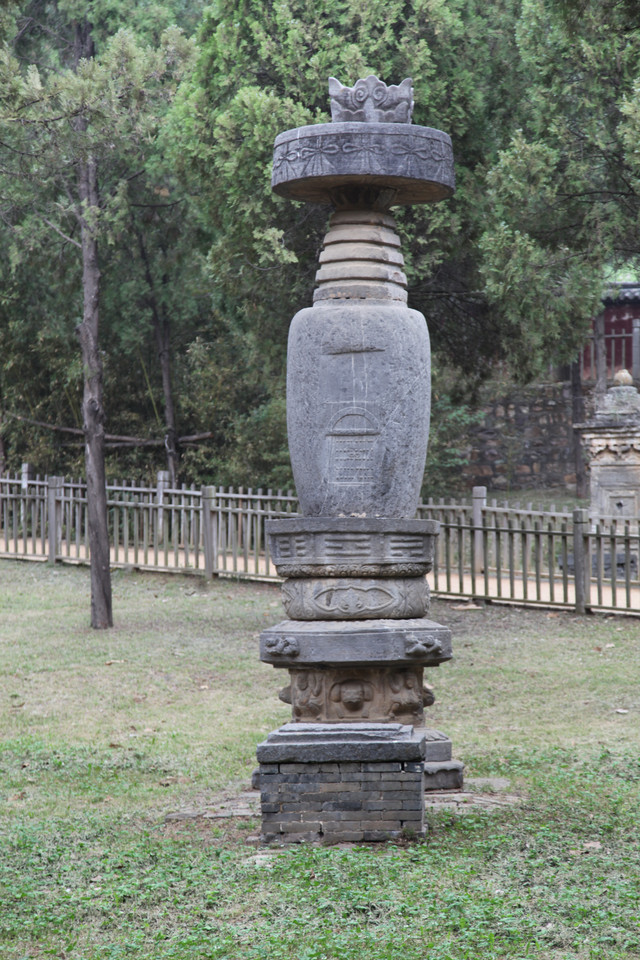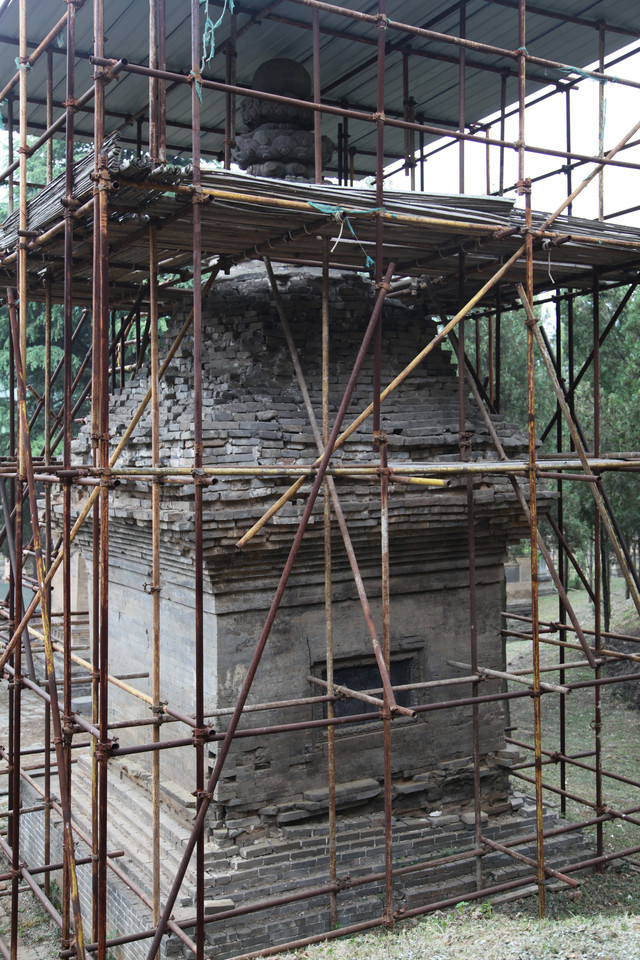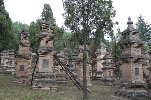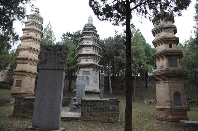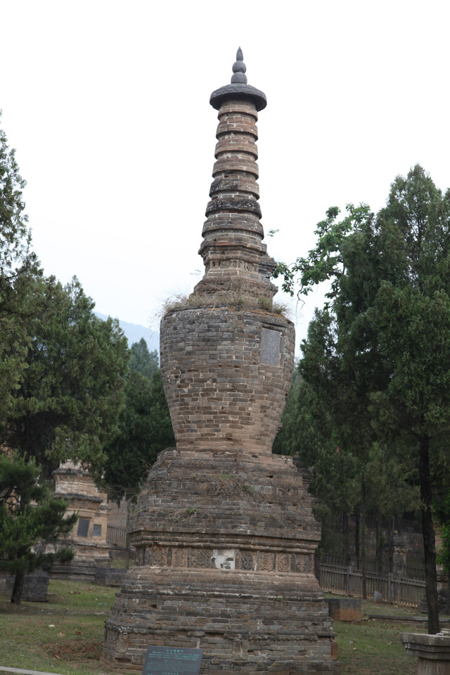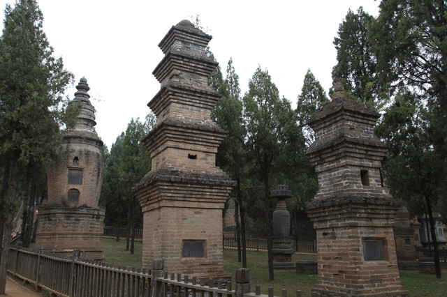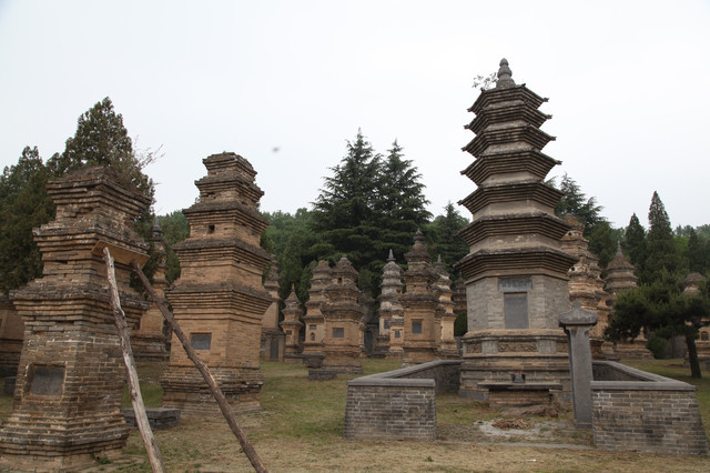 最早的一尊灵塔,是唐德宗贞元7年(791年)修建的法玩禅师塔,迄今已有1300年,禅师的佛塔已经有点倾斜,正在修缮加固中。有一个显赫色的的高僧佛塔,旁边还立有两个石碑,据说是文革期间对少林寺的保护做出了重大贡献的高僧的灵塔。