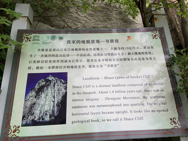 少室山的地质结构十分奇特,那一排排纵向陈列的狭长的巨型条状岩石,把整个山体从上至下如一册册图书般,整齐地码放排列着,故得名“书册岩”。