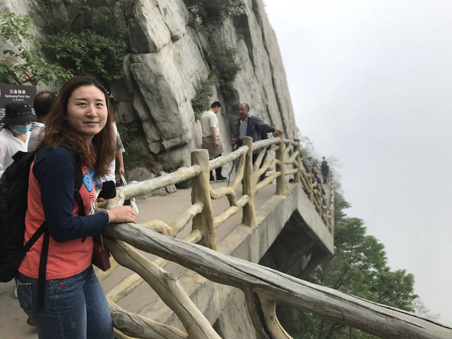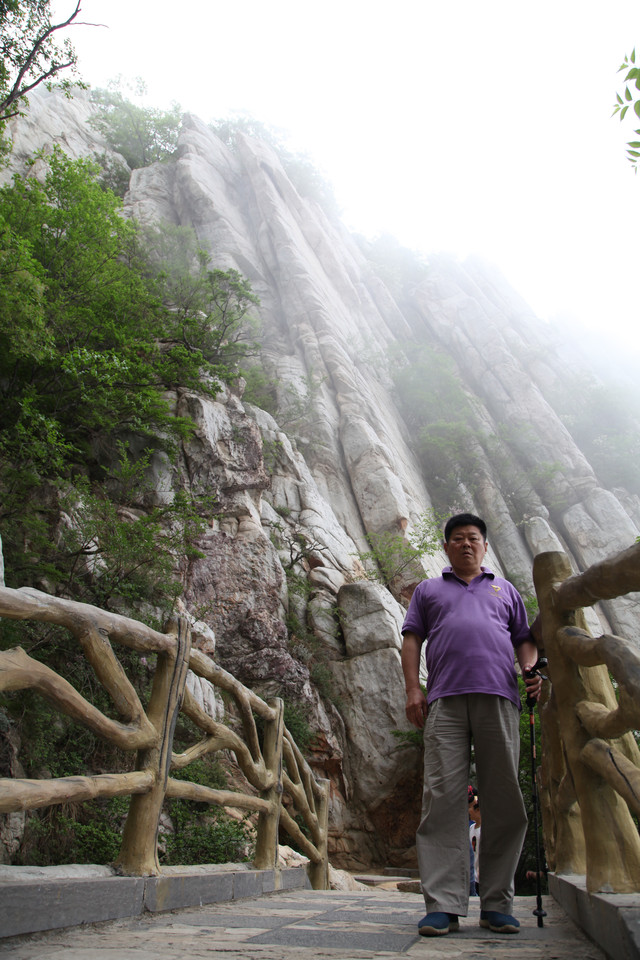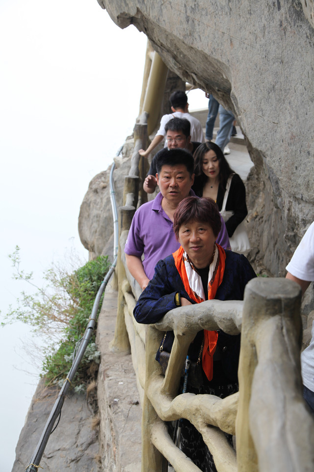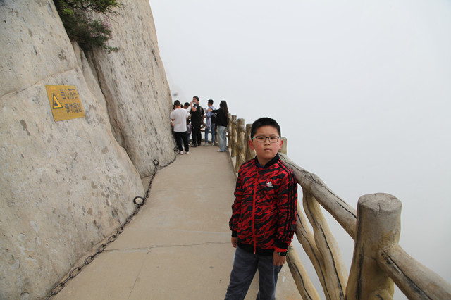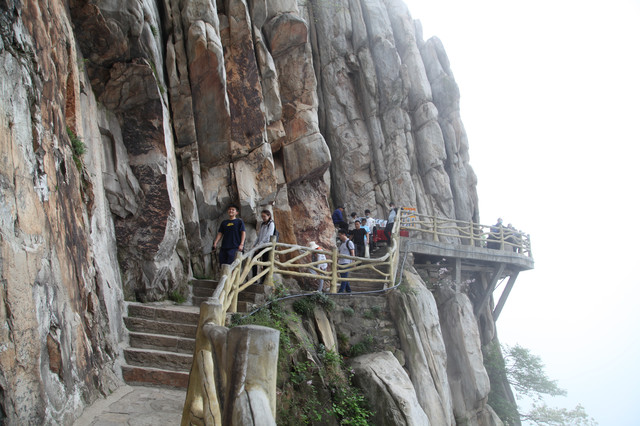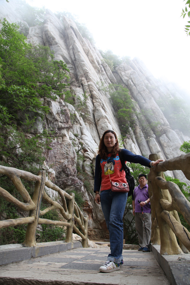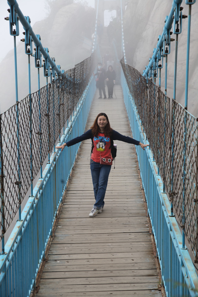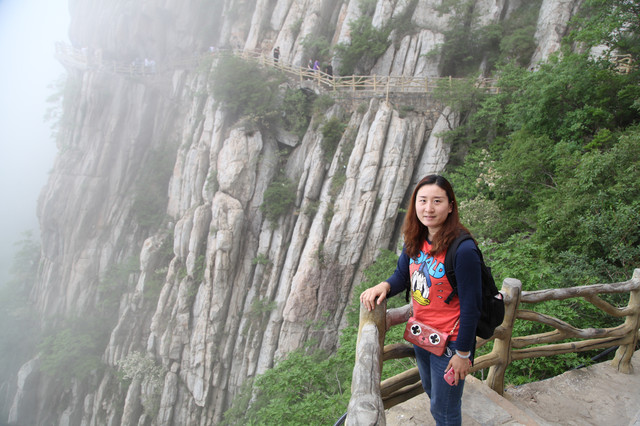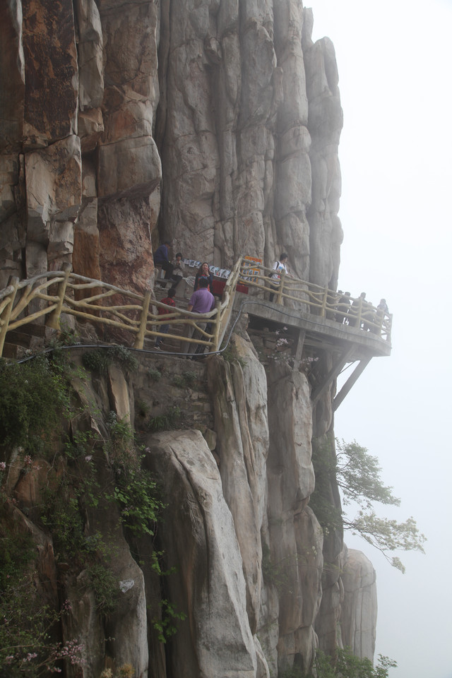 从缆车站出来,直奔栈道入口,此刻山雾弥漫,一阵阵浮云不时从眼前掠过。空气中透着几分清凉,气温偏低,能见度也很低,对面的山峰全都烟隐在茫茫云雾中,走在栈道上,颇有几分俊逸仙游的梦幻感。