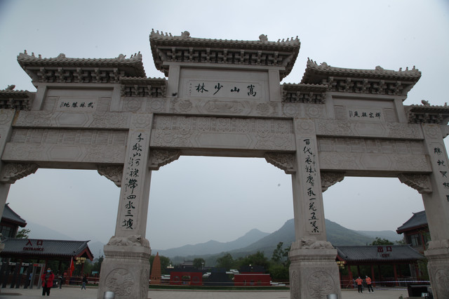 就着胡辣汤的鲜香,吃过丰富的早点,驱车自酒店地下一层的停车场驶出,沿着郑云高速和郑少高速,我们畅通无阻,抵达河南嵩山少林寺山门,一座高大的手持禅杖的和尚铜像,屹立在山门前方。