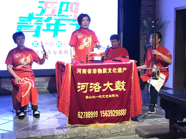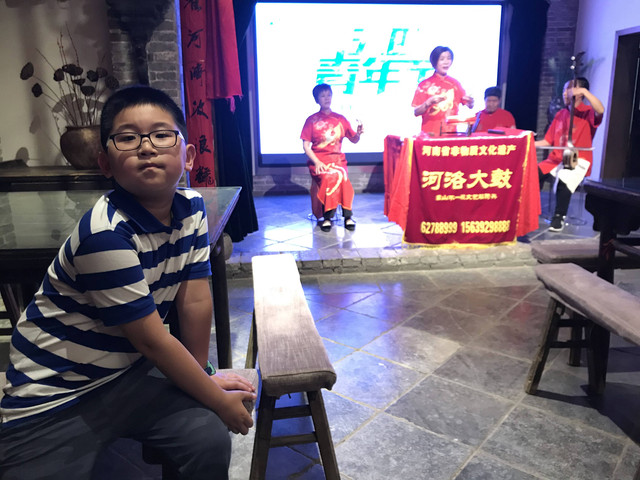 这是一家很有特色的当地餐饮店,典雅的建筑格式,富有民俗韵味的装饰,富有河南地方特色的菜品,还有河南省非物质文化遗产—河洛大鼓的传承人现场演唱助兴。