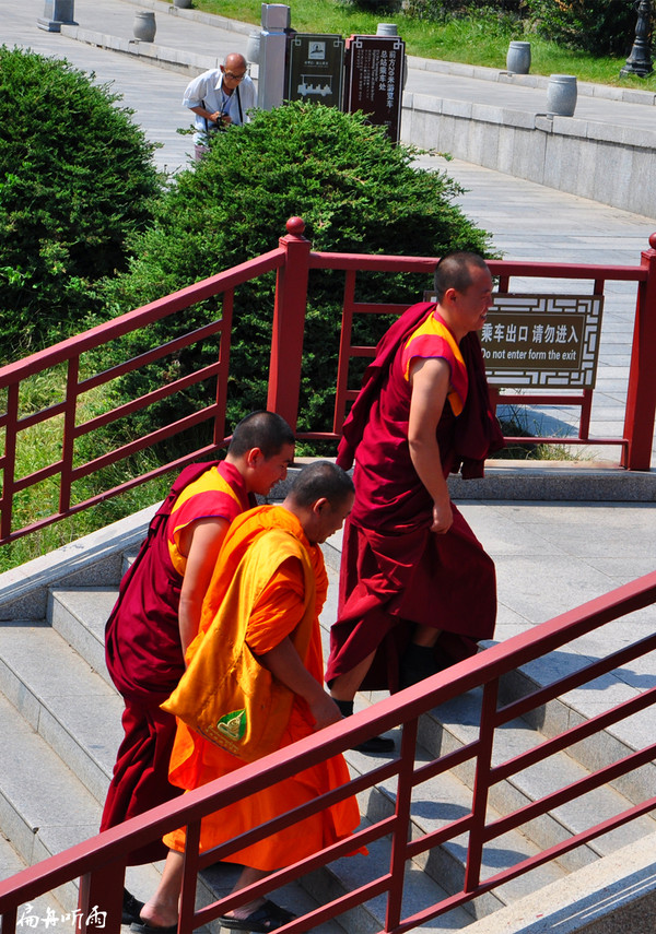 因断臂立雪的故事,今天僧人们身披袈裟时,总是只披盖左肩而露出右肩,并且肩头袈裟的一半为红色,一半为黄色。僧人行礼时,总是双手合十于胸前,而少林寺僧人行礼时,都是单手手指并拢竖起于胸前。