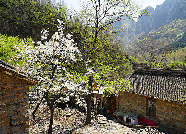 上午行走在被称为爱情谷的桃花谷中。由于季节的关系,山谷里只有不多的几棵桃花盛开在绿色的群山里、瀑布边。