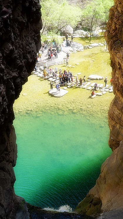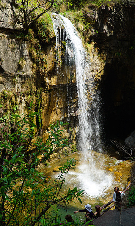 下午去潭瀑峡,那里有一个不老泉。相传,有个古人渴饮此泉,饿食黄精,寿至338岁,仍健步如飞。我们也在那里喝上几口泉水,粘点仙气。