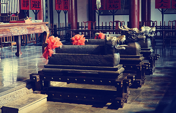 ▲推得动沉重的铜制大缸吗?