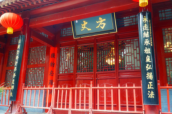 少林寺是汉传佛教的禅宗祖庭。现任方丈释永信,是个营运天才。也许今天有少林寺传授三坛大戒法会的原因,方丈室的灯亮着,但是无缘见上一面。门口有两位保安,是武林高手吧。方丈室门外对联与一些资料上记载的不一样。过去是:古迹林立,阅尽华夏三千年历史;名山纵横,览遍中州八百里风光。现在是:永远继承祖庭弘扬正法;信愿勤修圣果普度群生。