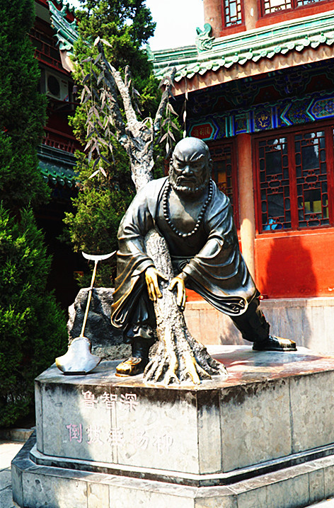 ▲鲁智深倒拔垂杨柳雕塑