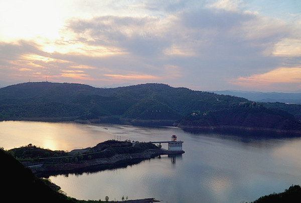 ▲晚霞中的小浪底水库