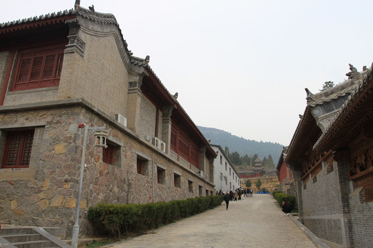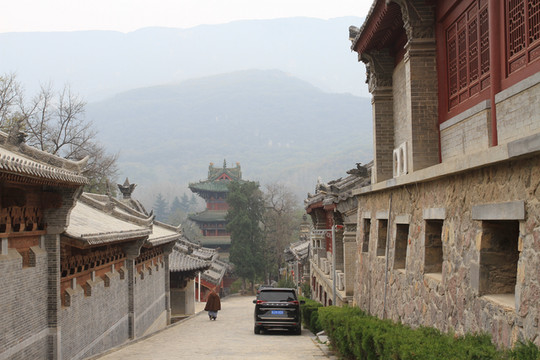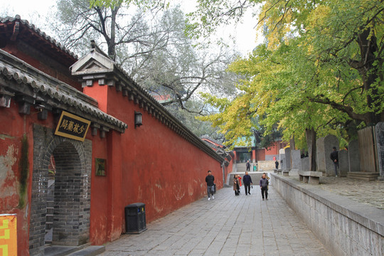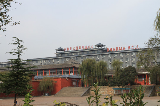 看罢武僧表演,沿中轴线西侧路下行,道路宽敞,还可走汽车。青砖建筑虽然是明清式样,却都安装了现代空调。时光荏苒,少林寺早已今非昔比,不再是几十年前的颓败模样,早已成为蜚声海内外、对外交往广泛的千年名刹。