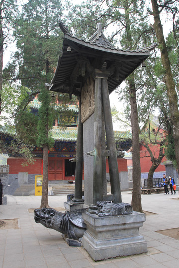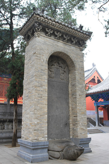 乾隆御碑,清乾隆15年(公元1750年)刻立。碑文是一首五言诗:明日瞻中岳,今宵宿少林,心依六禅静,寺据万山深,树古风留籁,地灵夕作阴,应教半岩雨,发我夜窗吟。