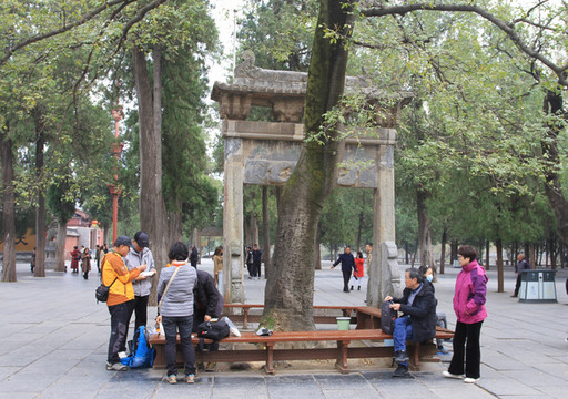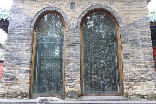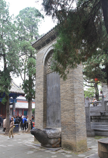 过了山门,便是甬道,道两旁是苍松翠柏掩映下的20多通历代石碑,称作碑林。