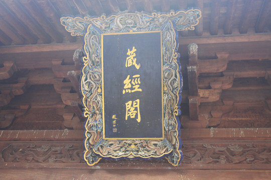 “藏经阁”匾额,为赵朴初先生所书。
