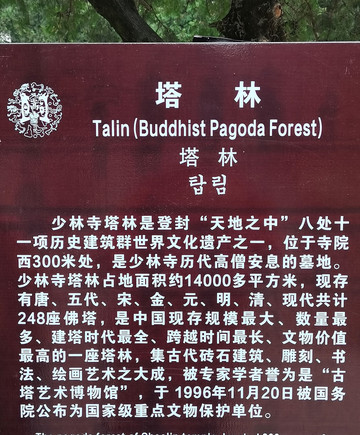 少林寺塔林,是登封“天地之中”八处十一项历史建筑群世界文化遗产之一,是少林寺历代高僧安息的墓地。