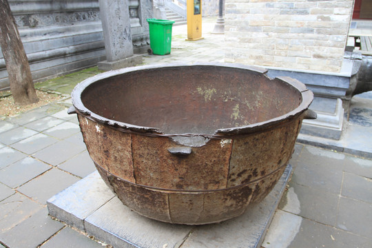 在藏经阁月台下有一口大铁锅,是明代万历年铸造的,据说是当时少林寺和尚用来炒菜用的小锅,从这口锅内可以想象到少林寺当时的昌盛与兴旺。