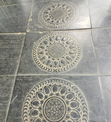 甬道地面以莲花浮雕地砖装饰,佛家寓意“步步生莲”。