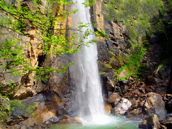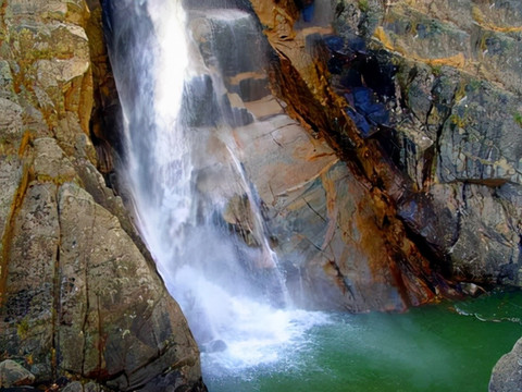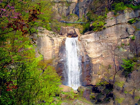 途中经过的白龙瀑布也是一道美景。好似一条白龙从天而降的白龙瀑被称为“白龙撞”。它一波三折,飞流直下,如白龙出谷。瀑布落差达80多米,那气势如霹雳闪电,雷霆万钧,好似山呼海啸,声荡峡谷,响彻云霄。
