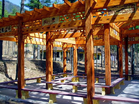白云山风景区比天池山规模大很多。如果游遍游细,恐怕得两天的时间差不多。所以,当日观光了森林氧吧、高山牡丹园、留侯祠、白云湖等景区后天色已近黄昏。晚饭后依然举行了热烈的篝火晚会,淳朴的民族舞蹈的助兴演出将晚会推向高潮。