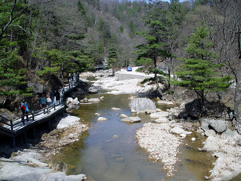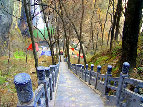 白云山最为著名的当属九龙瀑布风景区。而前往九龙瀑布则有两条线路。一条是步行穿越1•5公里长的九龙大峡谷到达九龙停车场后顺山道下到谷底。另一条则是直接乘车抵达九龙停车场后下山谷。为了节省体力,大部分游人都会舍去三华里步行的劳顿之苦而选择乘车前往。