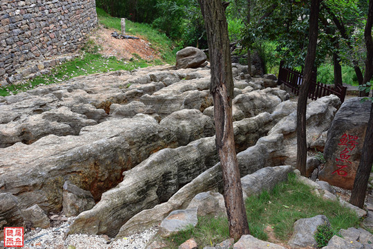 村间有几处象形的石头,传递出一种民间故事和童话趣味,惟妙惟肖,很是值得浏览一下。比如下面这块叫刘秀灶的石头,据说是东汉光武帝刘秀在逃命的过程中曾在此生火做饭。