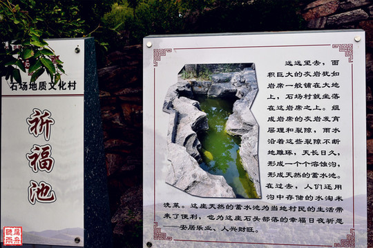 村庄中间的石头斜坡上,有一汪清可鉴人的池水,为明朝洪武年间从山西初来乍到的石场村先祖提供了一个赖以生活的保障。他们称之为祈福池,祈愿能在此安居乐业、繁衍生息、人财两旺。