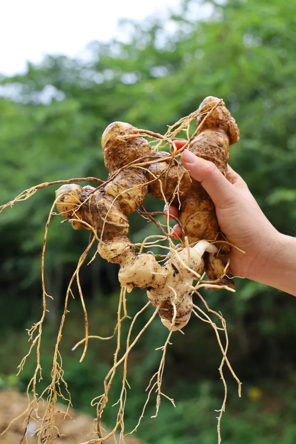 李老板随手指着一颗植物,就和我们的小伙伴们徒手挖,挖出一个大宝贝哦,在这里,黄精一般都是种三年以上才会收成的。