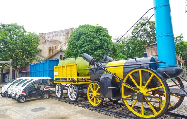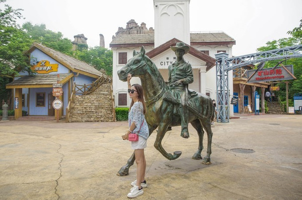 金矿镇主题园区是雄鹰在欢乐谷的最后一站,进入金矿镇,可以看到废旧的火车、简陋的住房、老旧的淘金机器、矿洞和一些牛仔人物雕塑。有一种仿佛来到了欧美老电影里,上世纪七八十年代西部牛仔片里的情景。