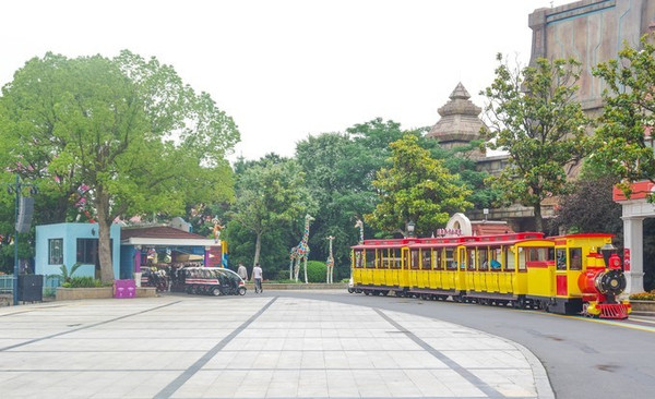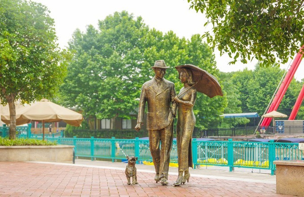 经过安检和检票以后,就进入了景区。虽然时间比较早,但是整个园区已经非常热闹了。首先游览的部分,叫做欢乐时光主题园区,这处园区可玩的项目非常多,而且适合各个年龄段,无论是小朋友和成年人都可以找到合适的体验项目。