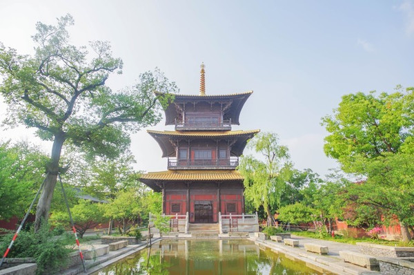 除了文化展示区以外,广富林遗址公园里还有一大片的古建区,古建区里有很多的宗教建筑,诸如仿唐建筑知也寺,以及三重塔、尧舜禹纪念馆等等,非常适合古装拍摄。
