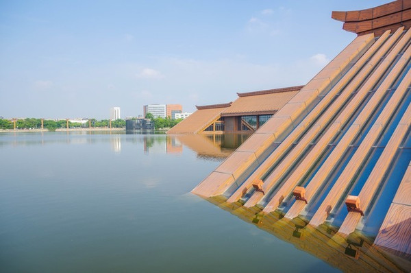 说起广富林古文化遗址,雄鹰真是向往已久了,因为这里的核心区域——广富林文化展示区,是一座座三角屋盖漂浮在水中,显得非常有创意。