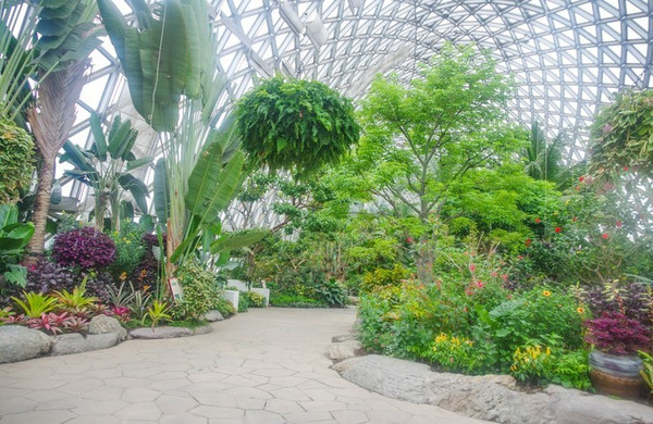 另一个就是热带展览温室,这是由热带花果馆、沙生植物馆和珍奇植物馆等3个单体温室组成的温室群,总面积多达12608平方米。