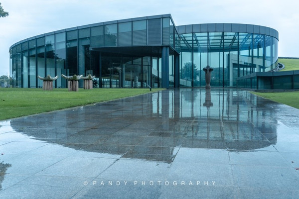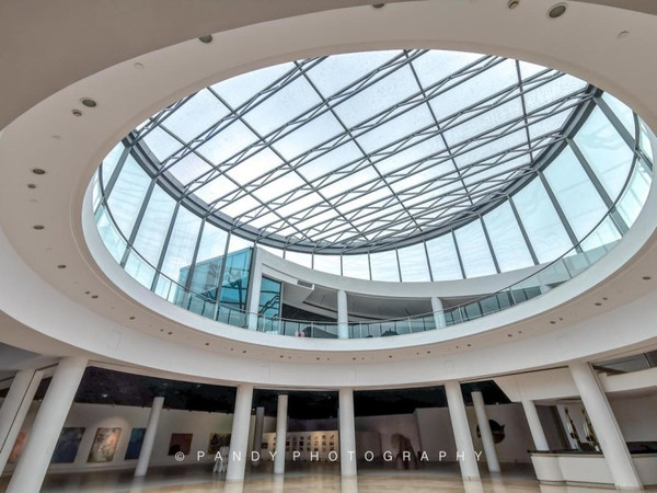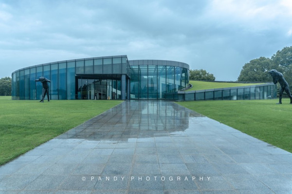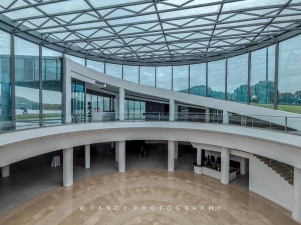 为了不破坏公园的整体视觉效果,美术馆在建造之时采用了双螺旋地景工程,大部分的建筑体隐藏在地下,而地面以上的建筑则以通透的玻璃饰面。无论晴天、雨天,在美术馆里都能感受到湖区最美的景色。