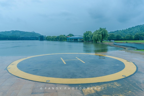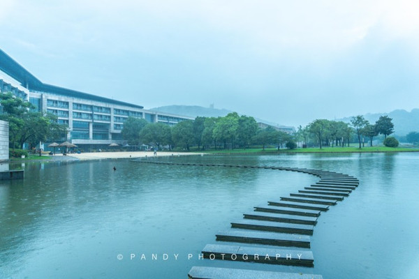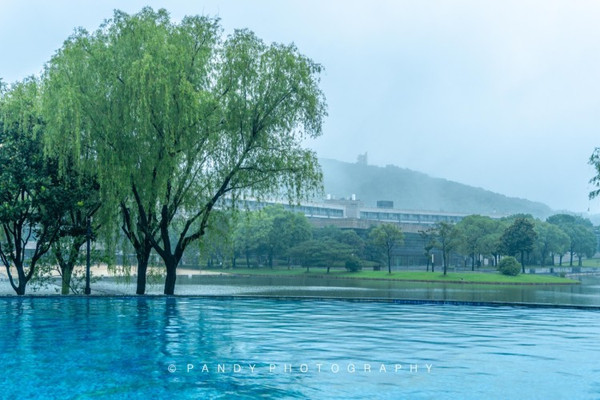 倾盆大雨中一位垂钓的游客安静的坐在雨中,仿佛天地间只剩下他一个人,那种宁静的感觉,一瞬间让我很感动。