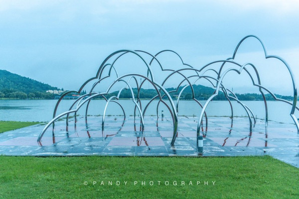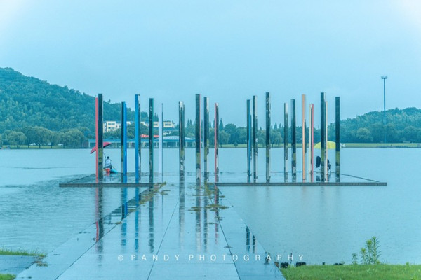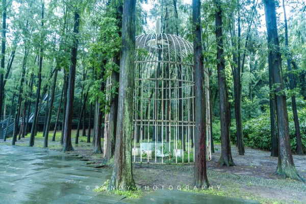 等我逛到冬岸的时候,天色已经变得很暗,雨越下越大,也看不到其他游客的身影,我开始有点害怕,慌忙赶路。直到远远的望见“反射的森林”这座雕塑时,我才放下心来。
