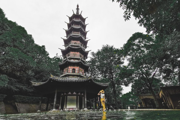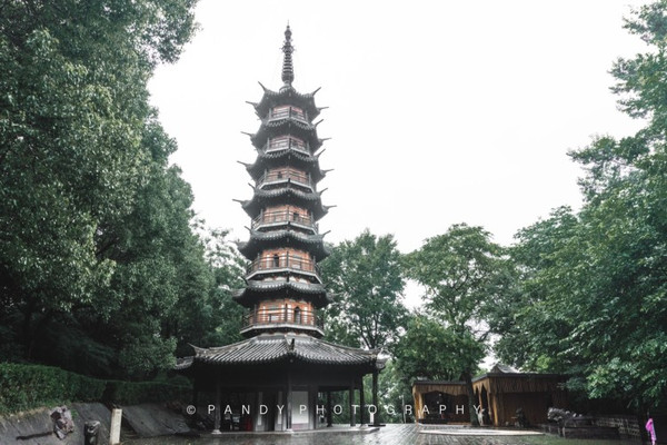 沿着台阶拾级而上,最先看到的是秀道者塔,它是拥有八个角的七层塔,砖木结构的塔身总共高20米。