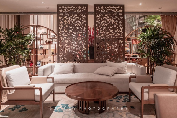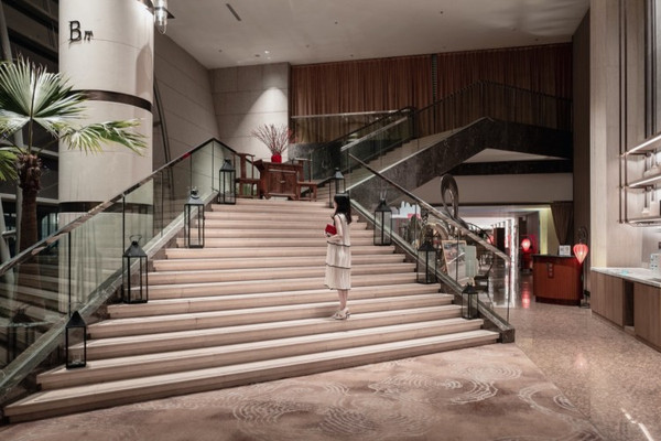 酒店是新中式的装修风格,宽敞的大厅、灯光的营造,都让酒店呈现出十分舒适的感觉,我喜欢找寻一些具有设计感的角落进行拍摄: