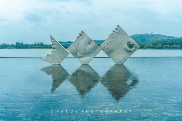 另一个雕塑:美人鱼,来自保加利亚的旅意艺术家——吉沃吉·菲林,这件作品的灵感来自于东方帆船,象征着三片风帆的雕塑浮在水面上,仿佛时间和空间上的持续。三块雕塑同时又呈现出美人鱼身体的不同部位,好像是风帆在经历了风雕水琢之后,渐渐变成了美人鱼。起伏的躯体、丰满的嘴唇、半人半鱼的身体……观看雕塑的时候想起了《小美人鱼》童话里那忧伤而美丽的故事。