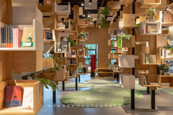 我觉得树林的设计很有创意,似乎也能指代“书林”,当漫步林间,随手拿起一本读物,只管感受当下的美好阅读时光吧。