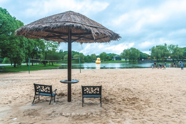 夏岸的亲水沙滩也是亲子活动的好地方,这里用近5000吨黄沙修建的沙滩,有种浓郁的热带风情,让人想起了马尔代夫的海滩。