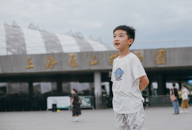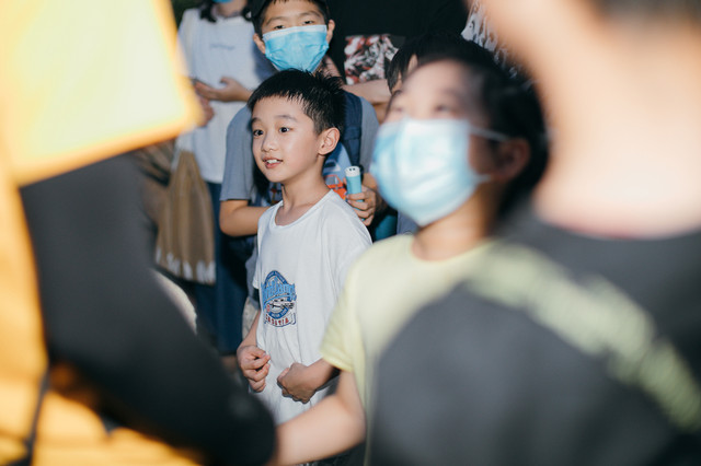 夜游活动下午6点半开始,需要在上海辰山植物园的2号门先集合,在空阔人少的地方可以摘下口罩放松一会儿,不过8月初的上海即使到了傍晚也是十分炎热的,这个时候也要注意小朋友的状态,汉堡挺激动的,所以状态很好。